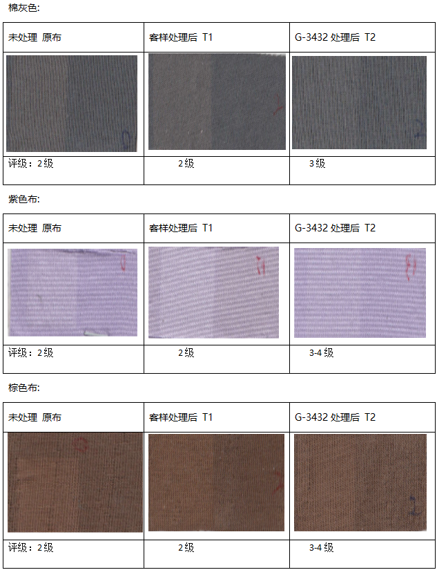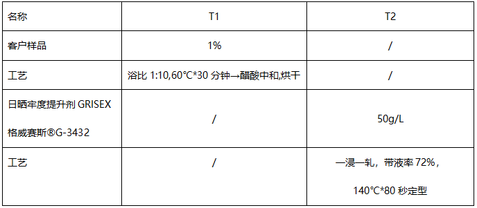 2、经过日晒牢度提升剂GRISEX格威赛斯®G-432处理后能提升0.5-1级左右,对颜色基本无影响,无色变。
