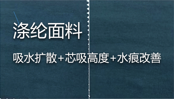 化纤面料在后整理过程中会产生一些功能冲突的问题,例如吸水扩散时间与芯吸高度及处理后有水痕的问题。我们通过对化纤面料尤其是一些中浅敏感色面料的吸水性、水痕等功能的优化,通过定制开发,为客户制定此方案,供有相似需求的面料品牌企业参考。