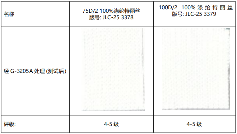 经过处理后的面料,抗酚醛黄变能做到 4-5 级,符合客户要求!