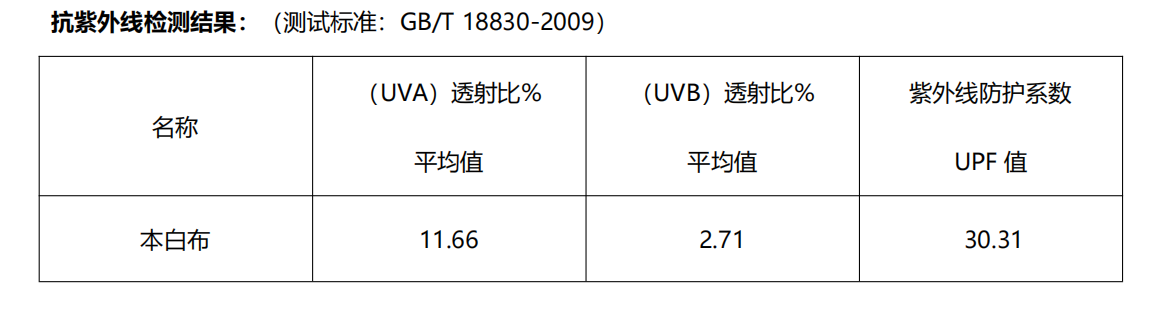 CVC本白平纹布做抗紫外线,国标要求UPF50+UVA/UVB<5%