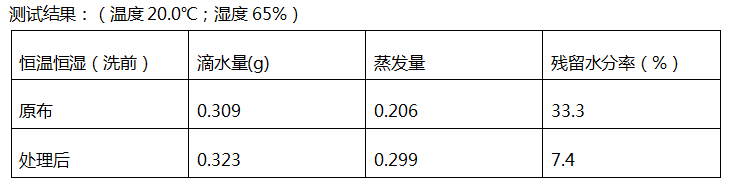 日标JISL 1097:55分钟水分残余率10%,滴水量0.3g,不要求洗后