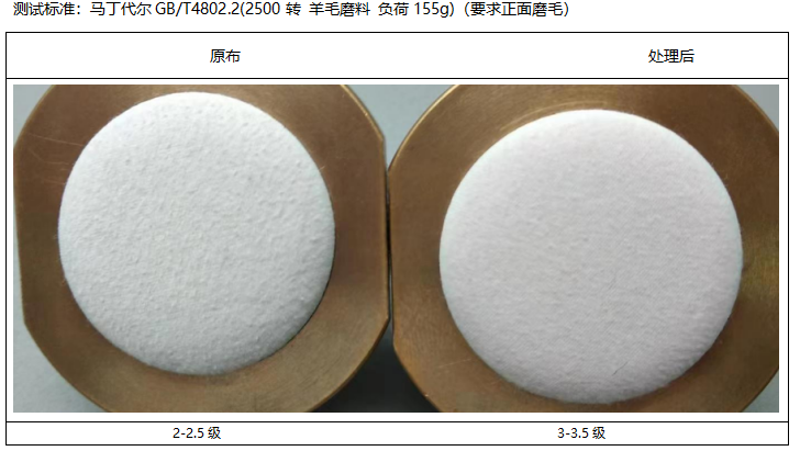 抗起毛起球处理时不影响手感、不影响吸湿效果、色变小 、毛球效果提升0.5-1级