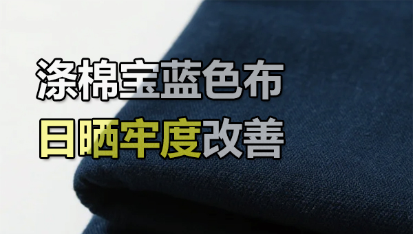 涤棉宝蓝色面料的日晒牢度问题尤为突出。这一技术难点主要源于其染色本身的特性:为实现宝蓝色鲜艳浓艳的色相,通常需要使用特定结构的蒽醌类、偶氮类等高性能染料,这类染料分子结构在持久的光照(尤其是紫外线)作用下,其发色基团或助色基团容易发生光氧化降解或光褪色反应,通过筛选开发,我们为客户特制定此方案,供有相似需求的面料品牌企业参考。