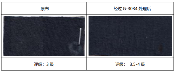 经过日晒牢度提升剂 GRISEX 格威赛斯®G-3034 处理后色变小,能提升 0.5-1 级