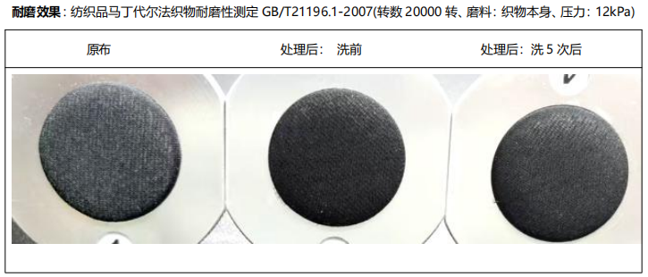 耐磨标准:GB/T21196.1-2007(转数 20000 转、磨料:织物本身、压力:12kPa)