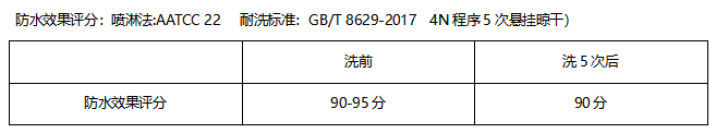 喷淋法:AATCC 22 耐洗标准:GB/T 8629-2017 4N程序5次悬挂晾干)