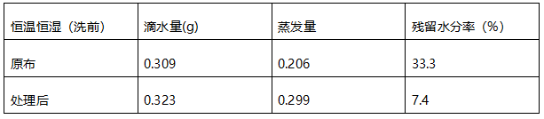 日标JISL 1097:55分钟水分残余率10%,滴水量0.3g,不要求洗后