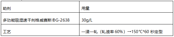 涤氨黑色针织布经过 多功能吸湿速干剂格威赛斯®G-2638处理后水份残余率达到7.4%,符合客户的要求。