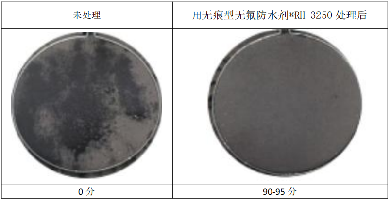 用无痕型无氟防水剂 ANFONE 安氟诺®RH-3250处理后的面料:防水效果可达到客户要求;面料处理后布面有无痕效果。