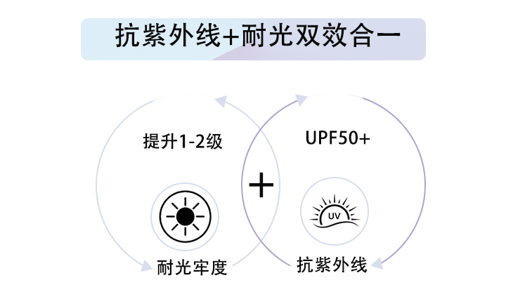 “阳光越强,褪色越快?”——纺织品的隐形杀手正在吞噬你的价值! 无论是孩童奔跑时跃动的衣角、运动员汗湿的防晒衣,还是户外遮阳伞下斑驳褪色的布料,紫外线(UV)的侵蚀不仅威胁人体健康,更让纺织品在光照下加速老化、褪色,甚至断裂。以“防晒+抗光解”双核科技,为织物披上持久“防护铠甲”,让色彩鲜活如初,让功能历久弥新!