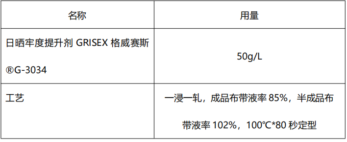 经过日晒牢度提升剂 GRISEX 格威赛斯®G-3034 处理后光牢度能提升 0.5-1 级。