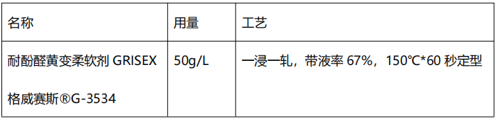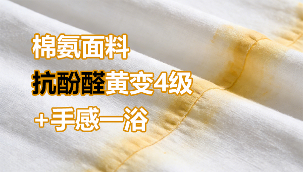今天,我们推出抗酚醛 4-4.5 级+手感一浴的方案:抗酚醛黄变与卓越手感,真正意义上的一浴达成。 它直击行业痛点,将复杂留给自己,将简约与稳定交付于您。经其专业处理后的棉氨面料,抗酚醛黄变等级4级及以上。这并非实验室的静态理想数据,而是经受了严格模拟预缩(轧水后再定型)考验的坚实承诺——在模拟真实加工环节后,面料依然能稳稳保持4级的抗黄变表现。