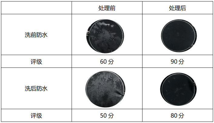 1、无氟防水效果评分:喷淋法:AATCC 22