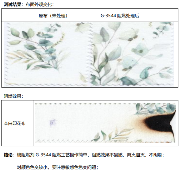 阻燃剂 GRISEX 格威赛斯®G-3544,200g/L,工艺:一浸一轧,带液率 90% ,烘焙(130℃*1-2 分钟)