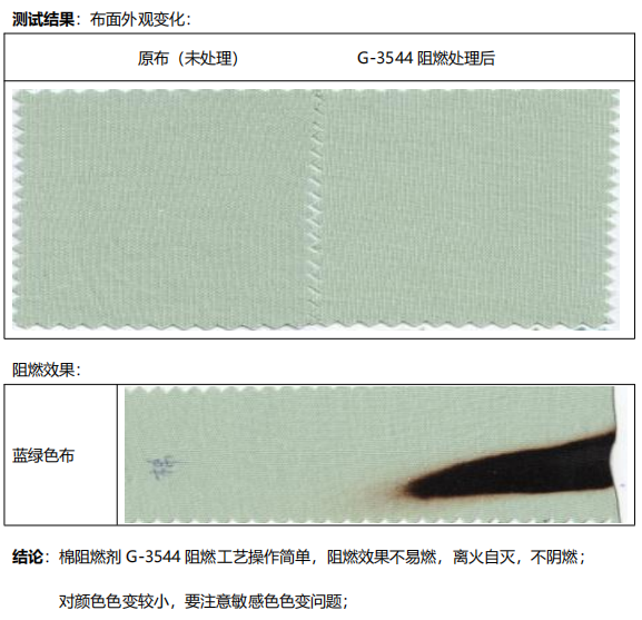 果绿色的棉纤维与竹纤维(纤维素纤维)是一种易燃材料。常规阻燃整理一般会导致纤维素纤维面料泛黄、变硬,影响面料附加值。为纤维素纤维开发阻燃方案,必须在“高效阻燃”、“不影响色光”及“不影响手感”四个维度取得突破性平衡。通过筛选开发,我们为客户特制定此方案,供有相似需求的企业参考。
