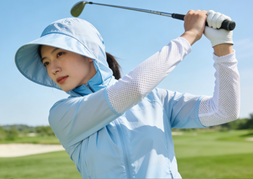 高尔夫运动通常在户外强日照环境下进行,单场运动时间长达4-5小时,运动员及爱好者长期暴露于紫外线辐射下。据统计,高尔夫球员一场比赛接受的紫外线照射量相当于在沙滩暴晒一整天。同时,高尔夫运动对服装的穿着舒适性、吸湿排汗性、挥杆伸展性有极高要求,传统的防晒涂层往往影响面料手感,无法满足专业需求。