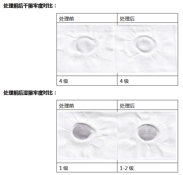 2. 处理后干湿擦牢度没有影响原来面料的干湿擦牢度;