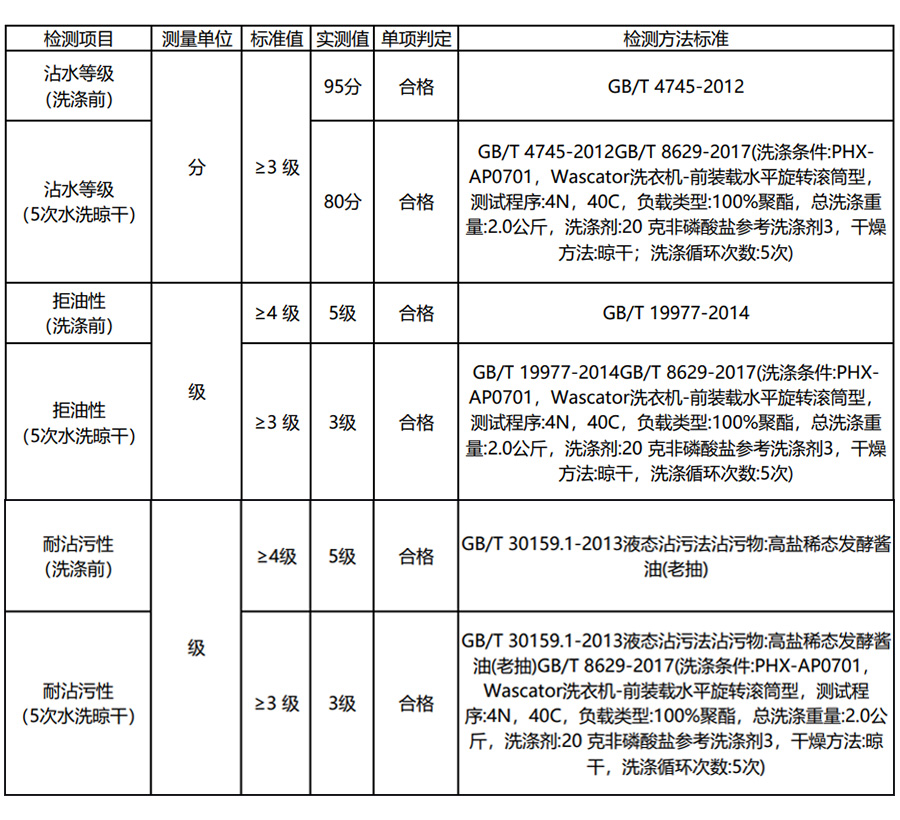 您好!可以试试我们的三防整理剂ANFONE安氟诺®RH-2449、防水增强剂安氟诺® RH-2376,经过处理后的面料,各项指标均符合国标GB/T 19977-2014《纺织品拒油性抗碳氢化合物试验》、GB/T 30159.1-2013《纺织品防污性能的检测和评价第1 部分-耐沾污性》、GB/T 4745-2012《纺织品防水性能的检测和评价沾水法》要求。试样或定制,请联系:18038728083(刘小姐)。